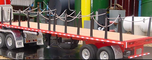 O chassi e a estrutura são feitos em aluminio e com dois eixos, para-lamas em aletas, rodas cromadas, roda sobressalente, estacas com correntes para fixar cargas