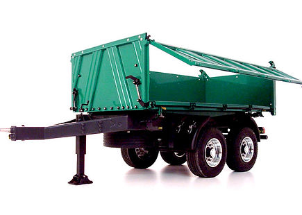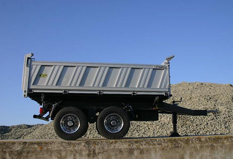 Este reboque basculante de dois eixos em tandem, trabalha com um cilindro hidrúlico de 3 vias ou Trilateral. É construido com componentes funcionais e pode ter a caçamba com laterais altas ou baixas.